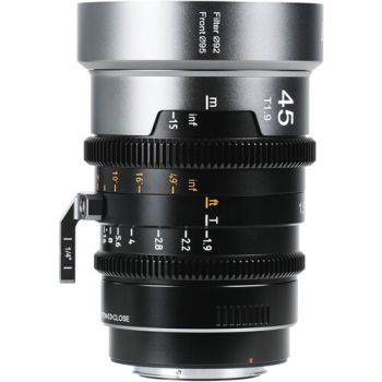 Esta lente IronStar de 45 mm possui um diâmetro externo frontal de 95 mm e suas engrenagens de foco e íris de 0,8 MOD são compatíveis com a maioria dos matte boxes padrão, unidades de follow focus e sistemas de controle de lentes. A rotação de 270° do anel de foco permite um ajuste preciso do foco.